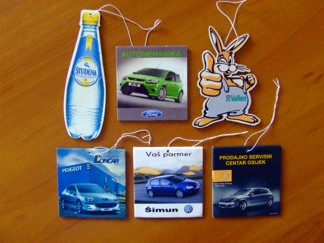 Vaš logo (sa kontaktom: tel, fax, adresa, e-mail), maskota ili fotografija mogu biti mirisni auto privjesak.